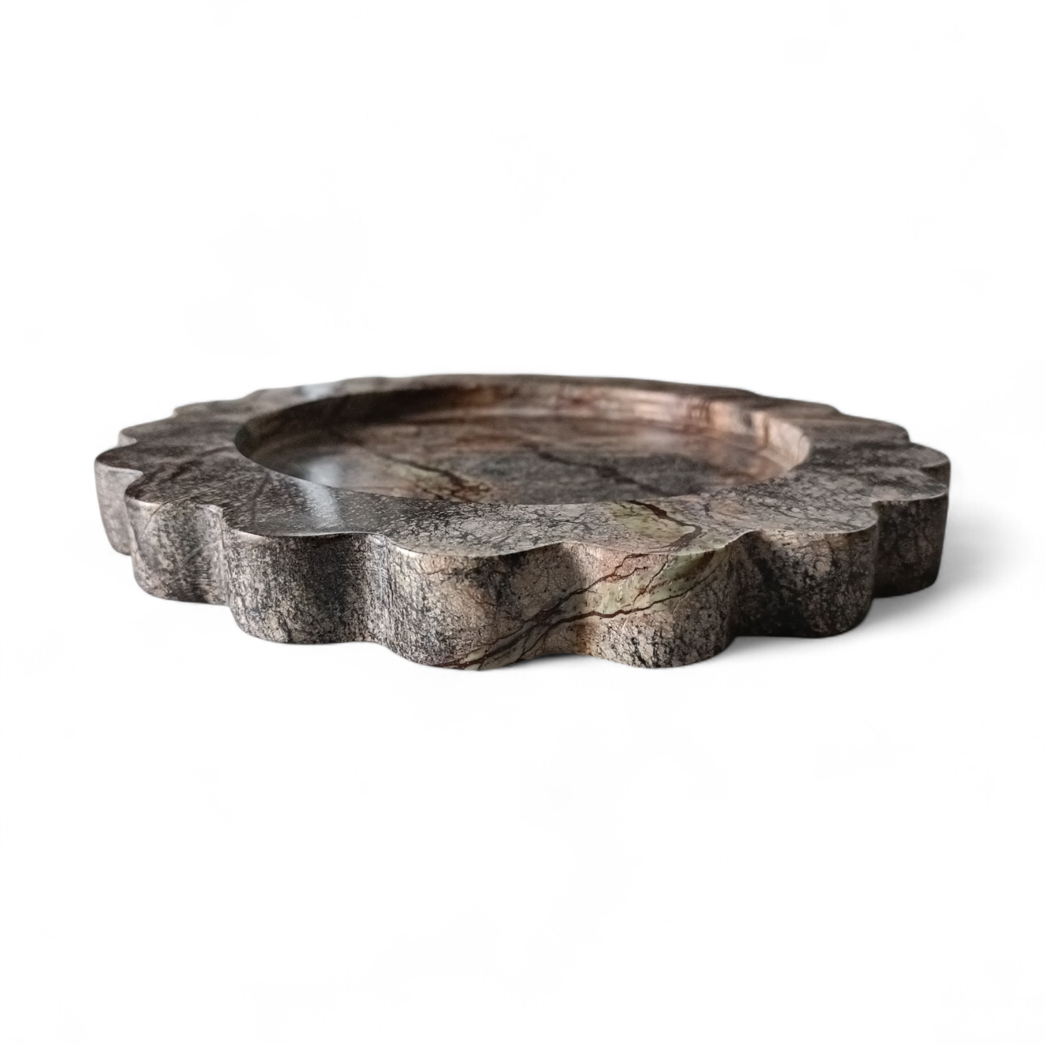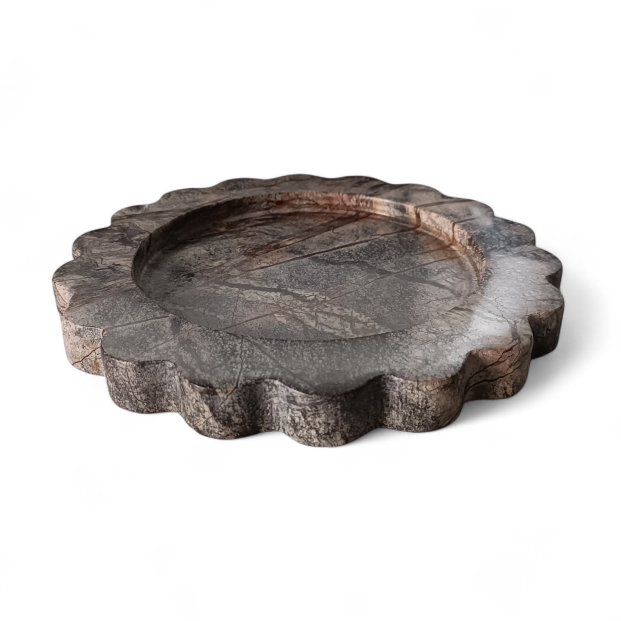 Elegant, A beautifully carved marble tray in a Round shape with a flat bottom. It can be used to keep your keys, Jewellery or small items to serve Cookies or can be placed as a Decorative Piece. The size is excellent for various uses, and the raised edges keep the contents in place. It can be used to serve drinks in this tray. It can be kept at the side of the tables or on the console.