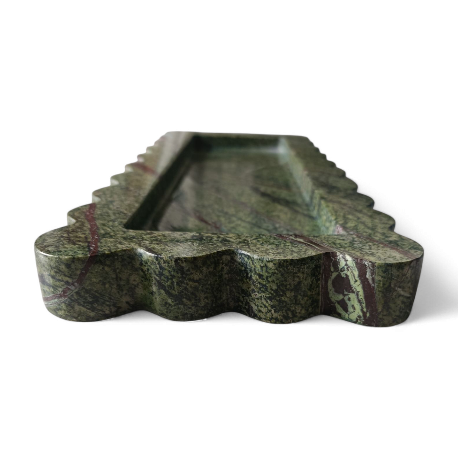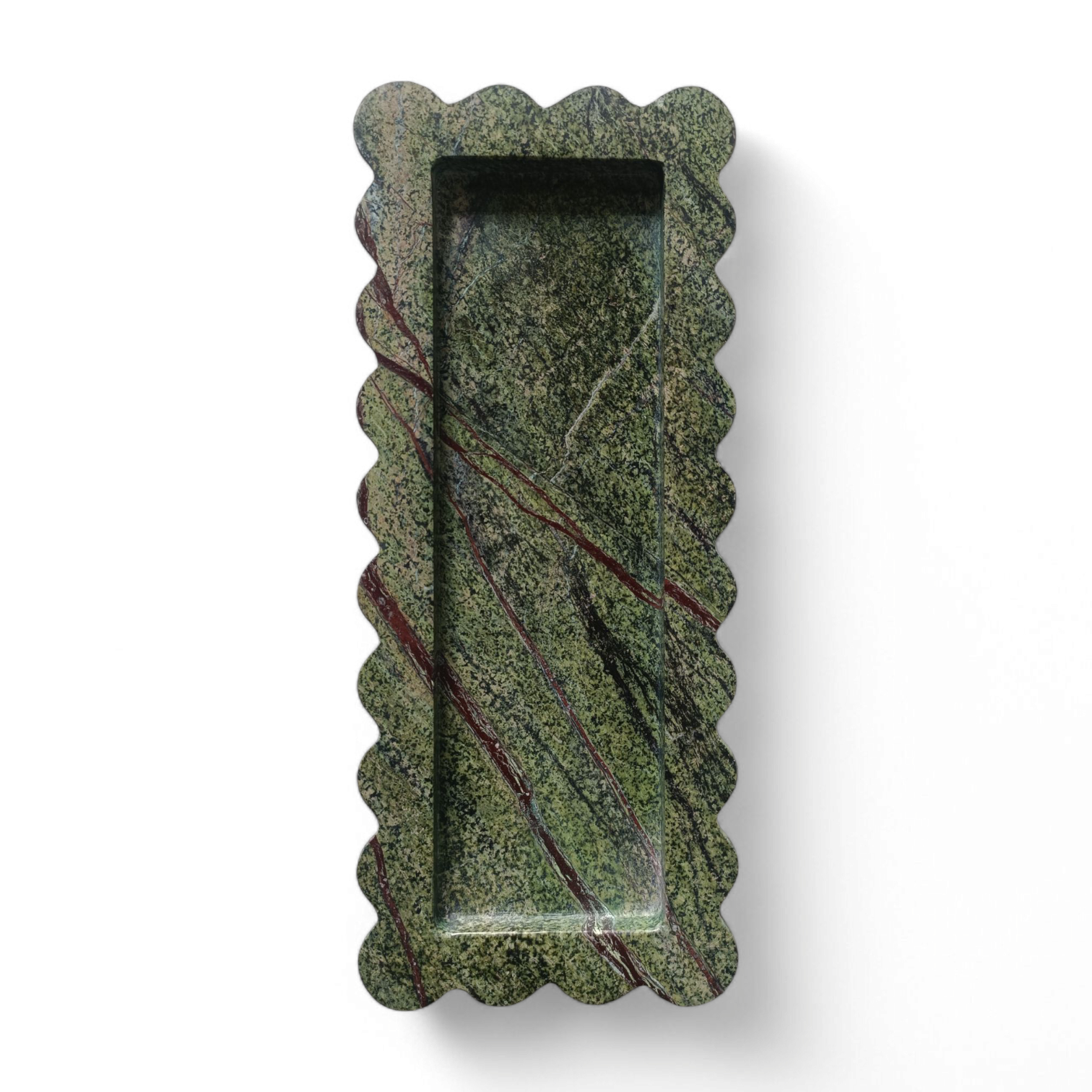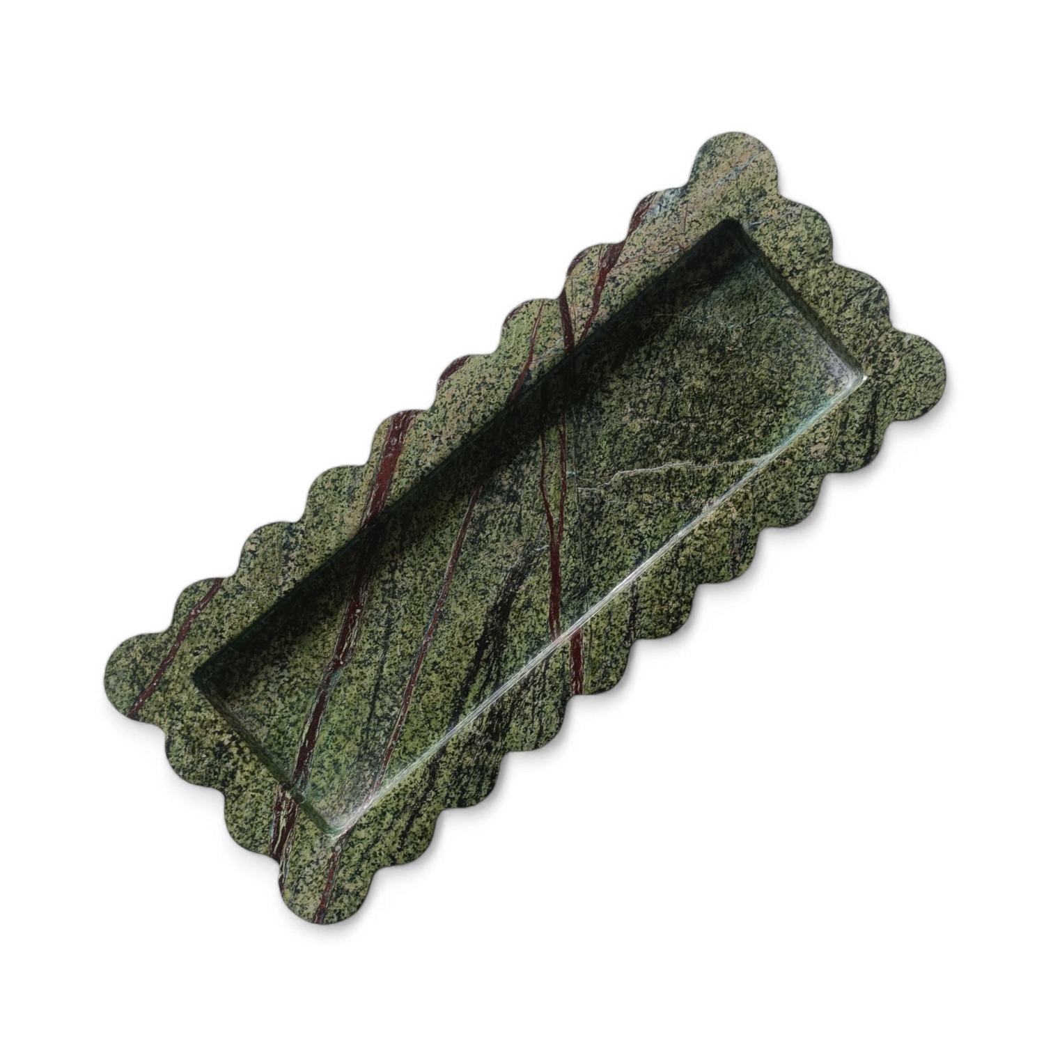 Dark Green Rainforest Rectangular Marble Serving Tray – 12×5 Inch Scalloped
