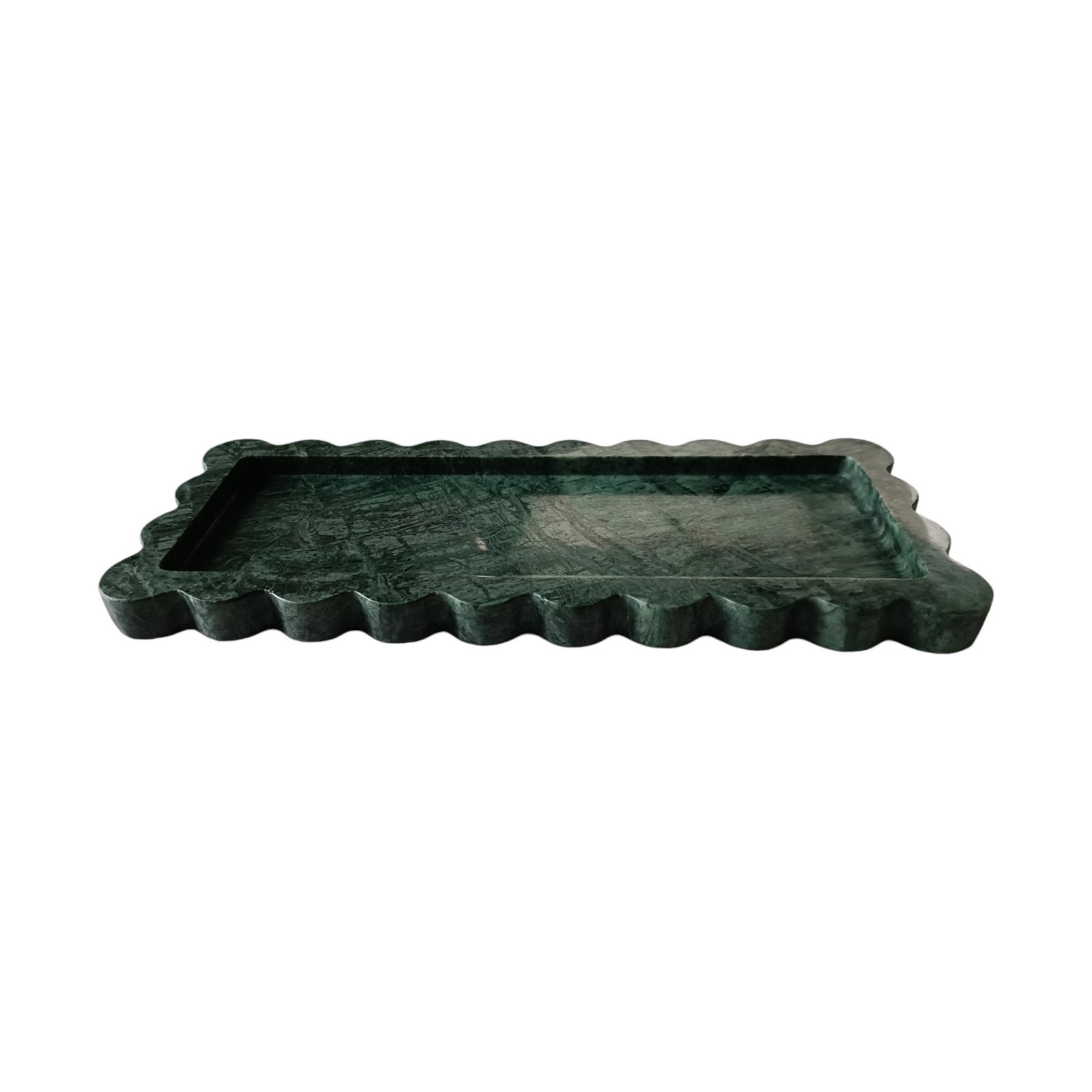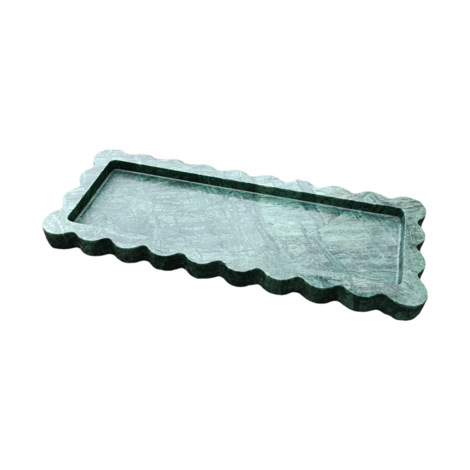 Green Marble Serving Tray – 12×5 Inch Scalloped Decor