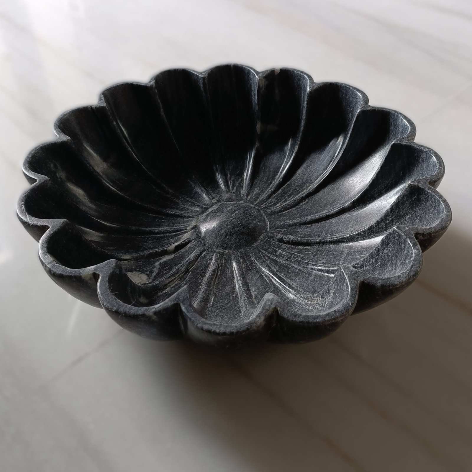 We support local artisans who put their best into each and every product they are involved in. This is a Beautiful handmade Greyish Black Marble Bowl from India. Please note that this is not a perfect Black Color bowl. It has black, white and grey shades. This bowl is so masterfully made that it will have a permanent place in your home. You may find variations in stone colour as it is the stone's natural colour, and no two pieces are the same. Handmade products are always special and unique, and the craftsmanship can be genuinely remarkable for marble.