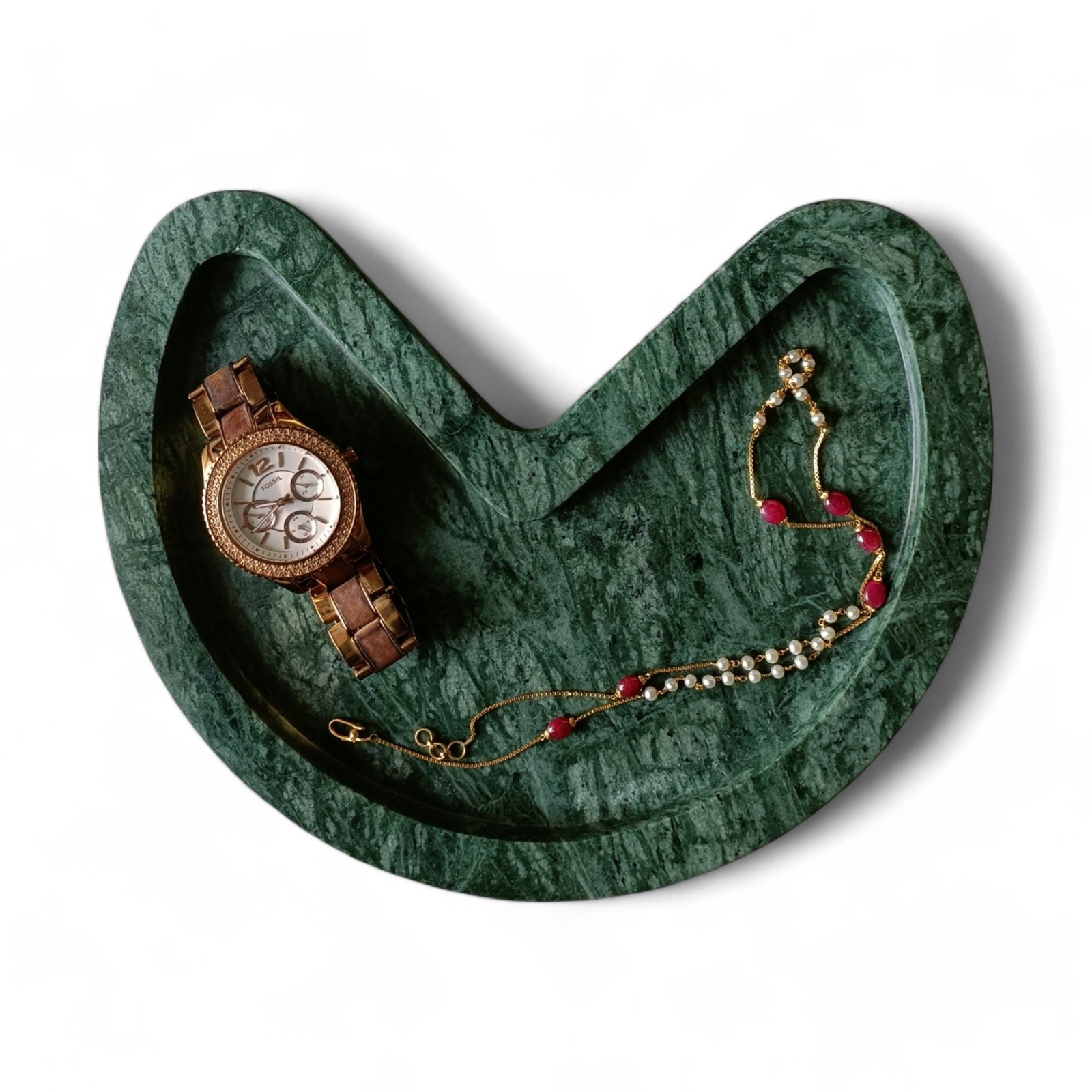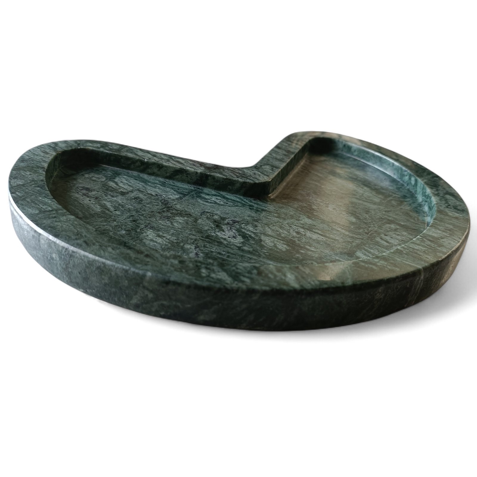 This elegant green marble tray is beautifully shaped with a flat bottom. It can store keys, Jewellery, small items, cookies, or drinks. The size is excellent for various uses, and the raised edges keep the contents in place. It can be kept at the side of the tables or on the console. You can easily clean the marble plate with a mild liquid detergent and a soft cloth. This will effectively remove any dust or dirt. You can repeat this cleaning process whenever you feel dust on it. If you want to use it for food, please make sure that you wash and clean it thoroughly before you use it. Since marble products undergo polishing and waxing to achieve a smooth finish, proper cleaning is essential before placing any edible items on the surface.