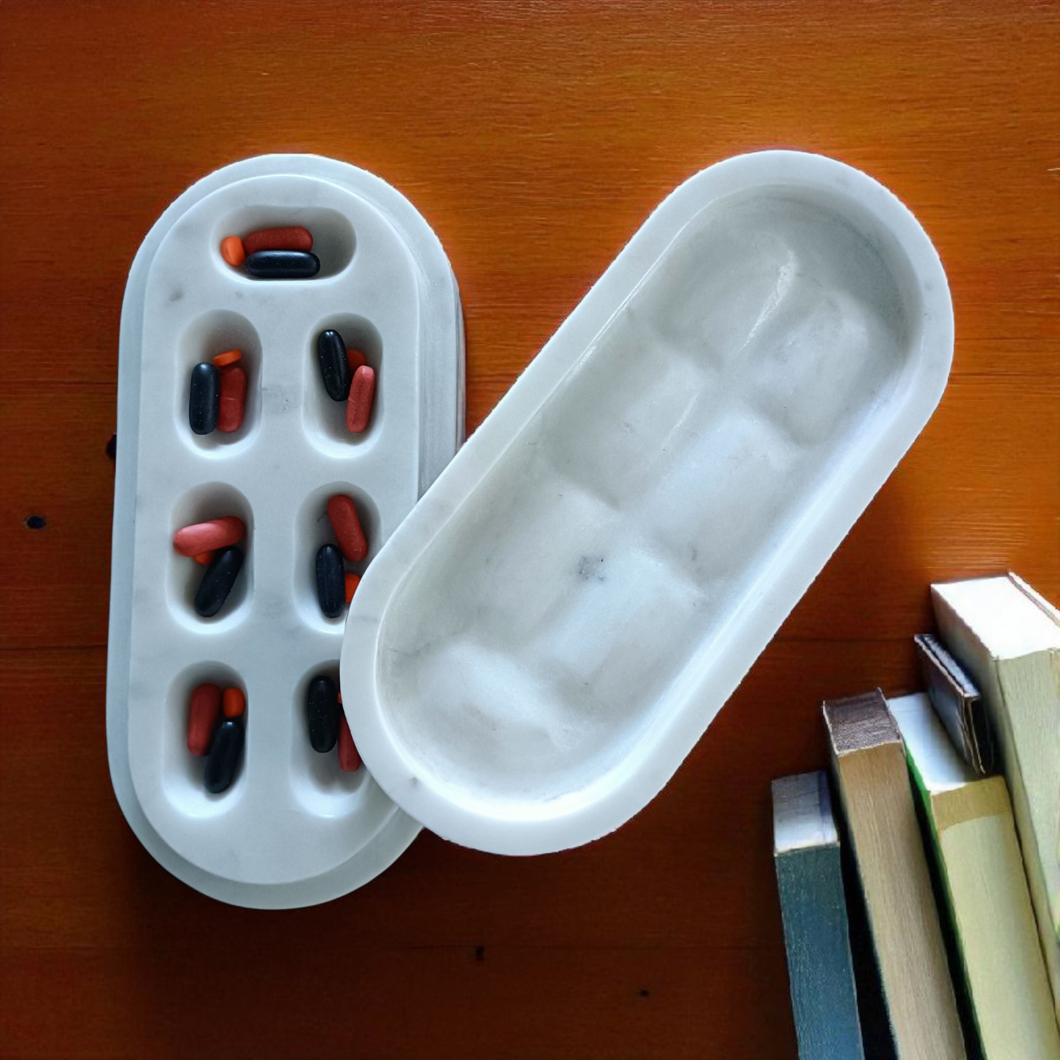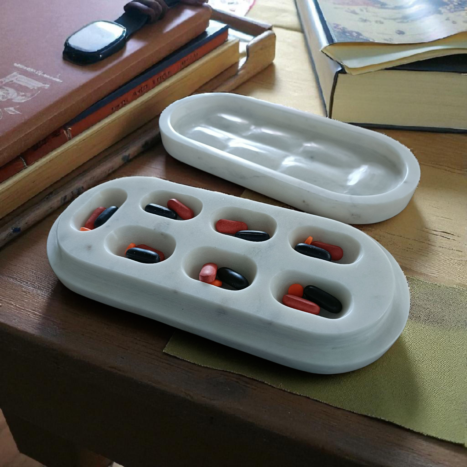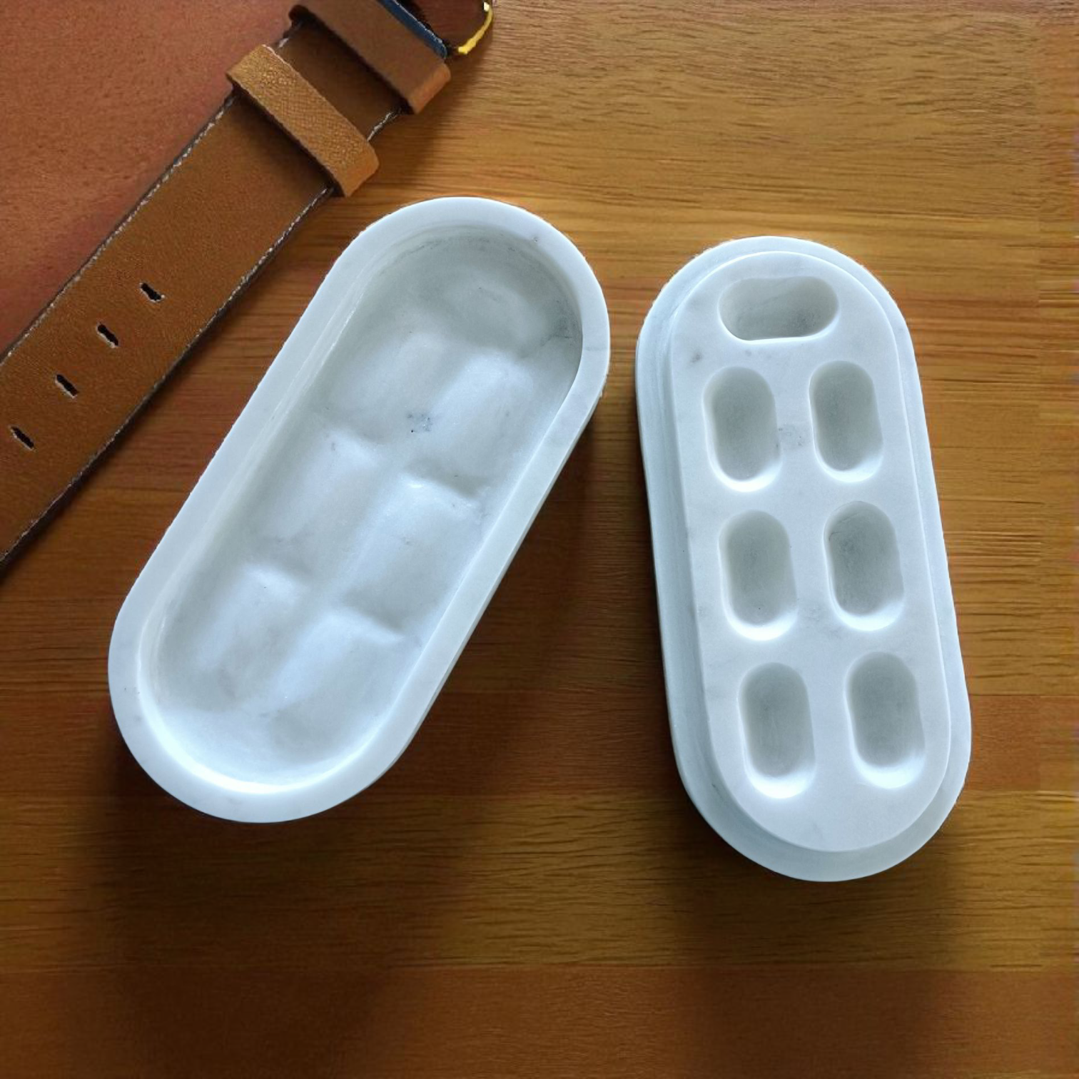 An extraordinary gift for yourself or a loved one—especially your mother—this pill box is a celebration of elegance, craftsmanship, and everyday luxury. A compact and stylish solution for keeping your daily medicines organised, this marble pill box is handcrafted from natural stone, giving it a unique and elegant appearance. Perfect for storing pills, supplements, or even small jewellery items, it features a smooth finish and secure lid to keep contents safe. Its timeless design makes it both a practical and decorative accessory for your bedside.