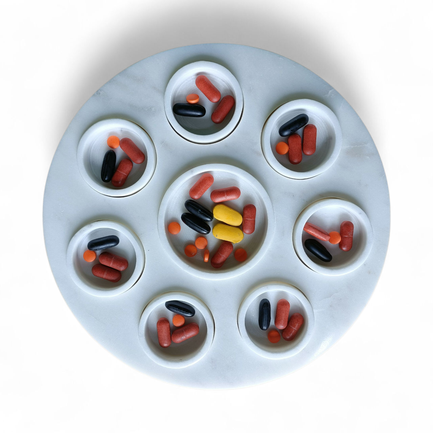 At the center of the plate lies a larger pill box, perfect for holding extra medications, small jewelry, or personal treasures – making it both practical and versatile.