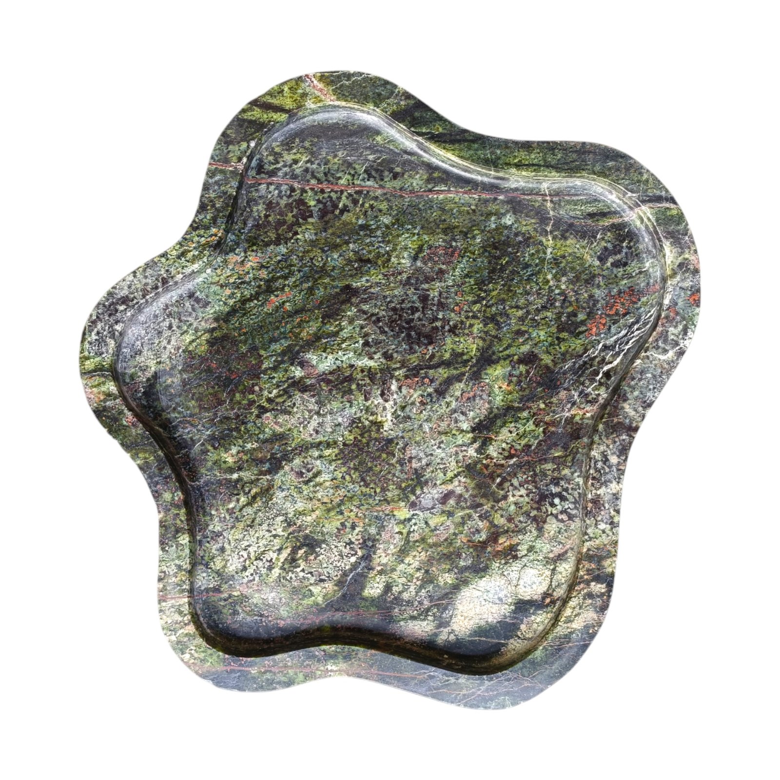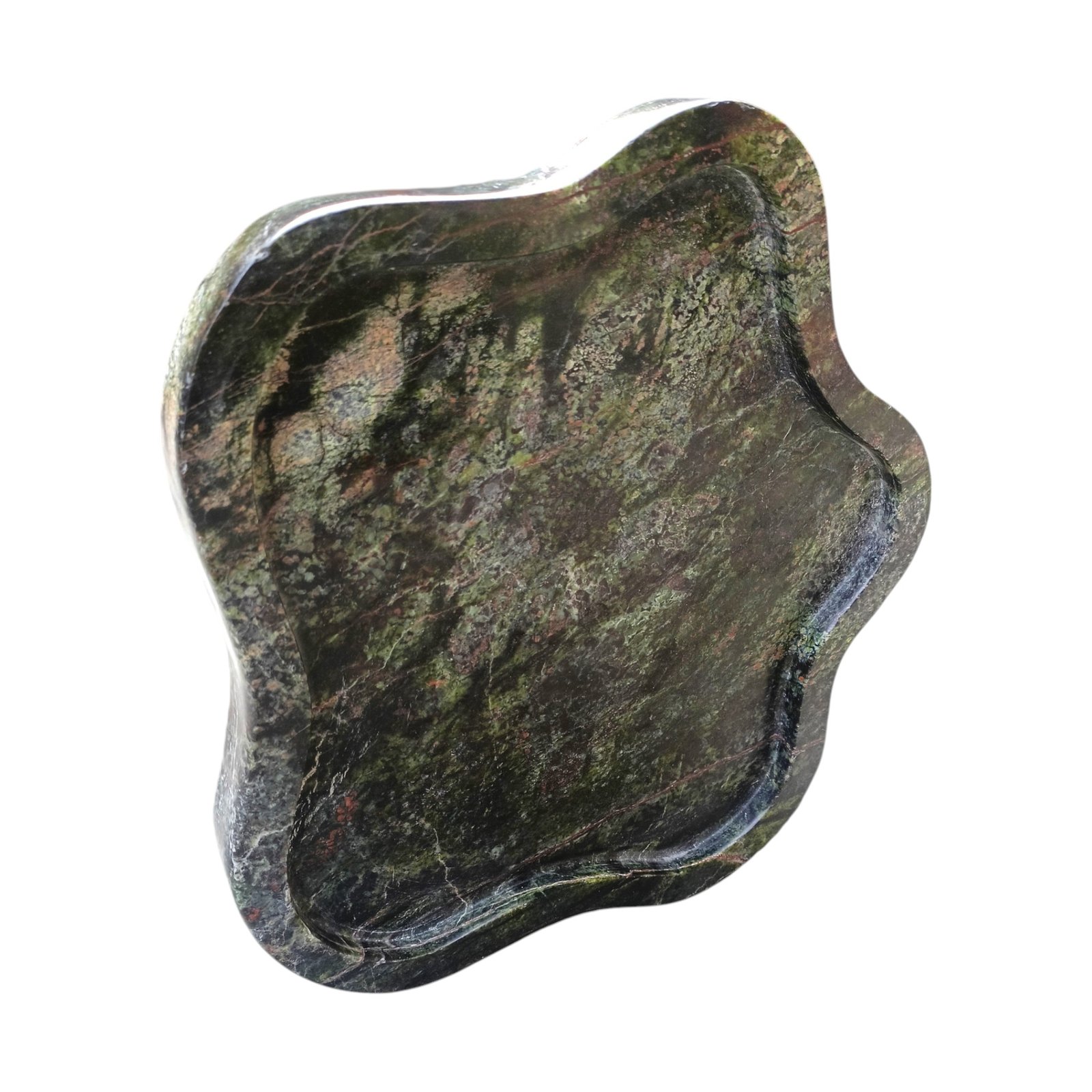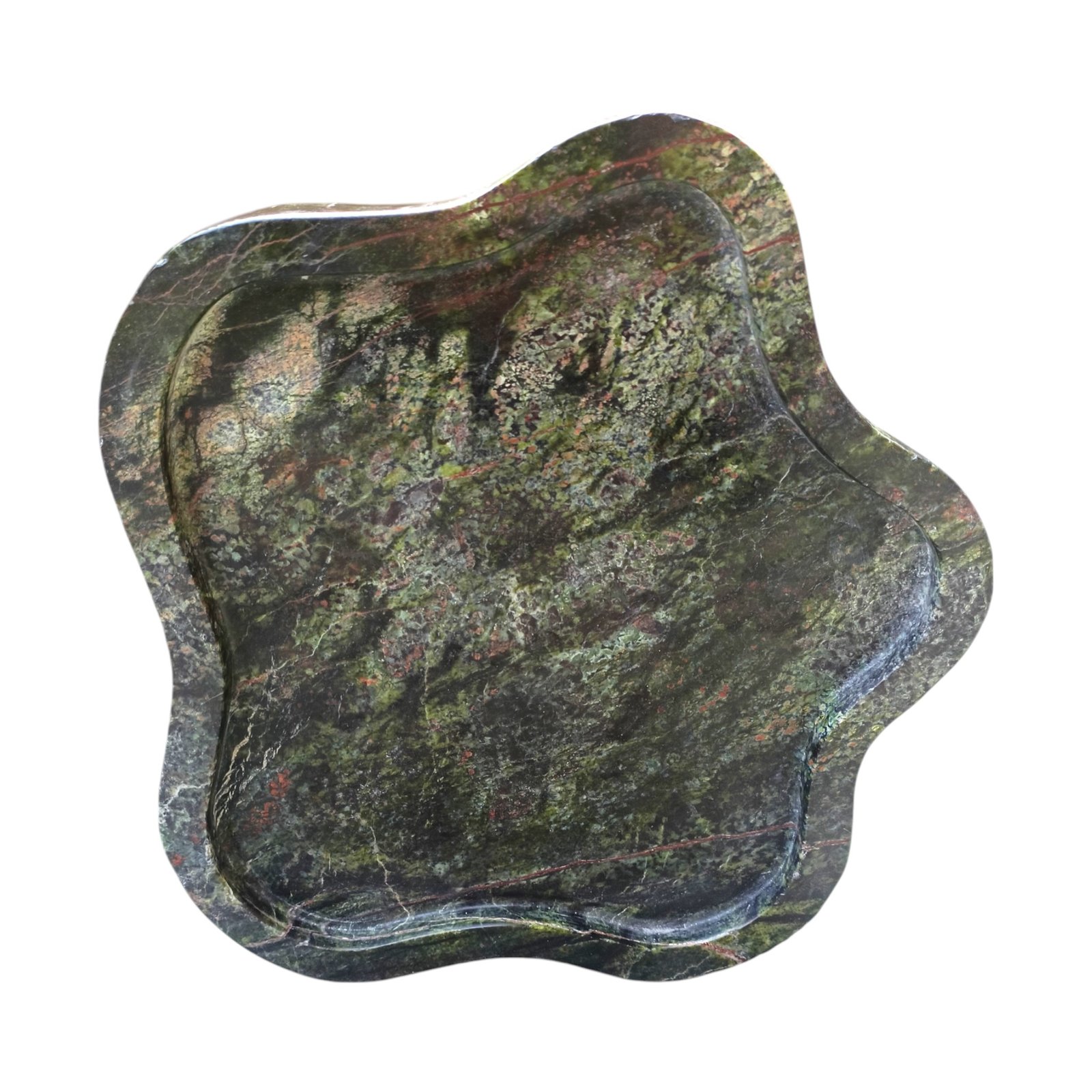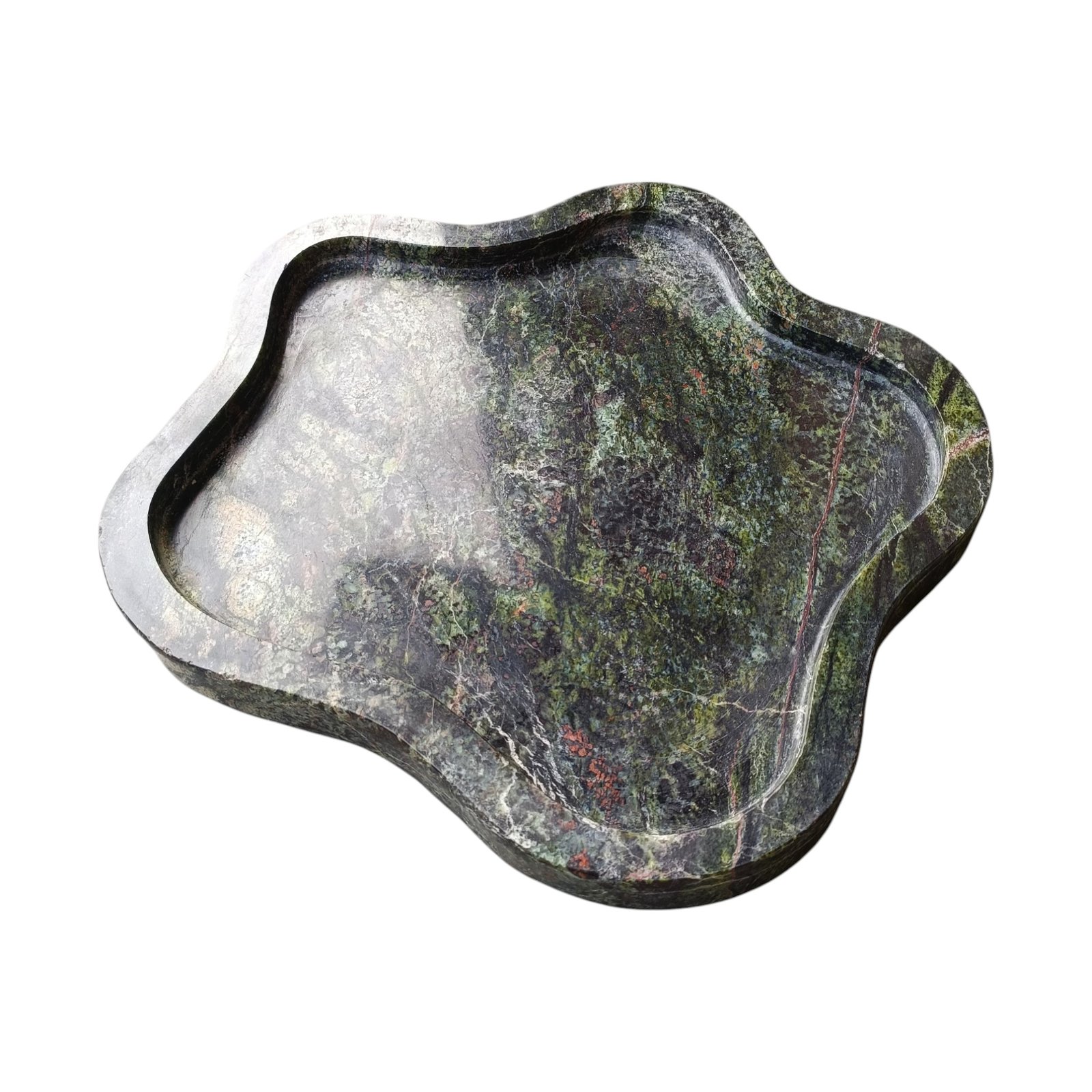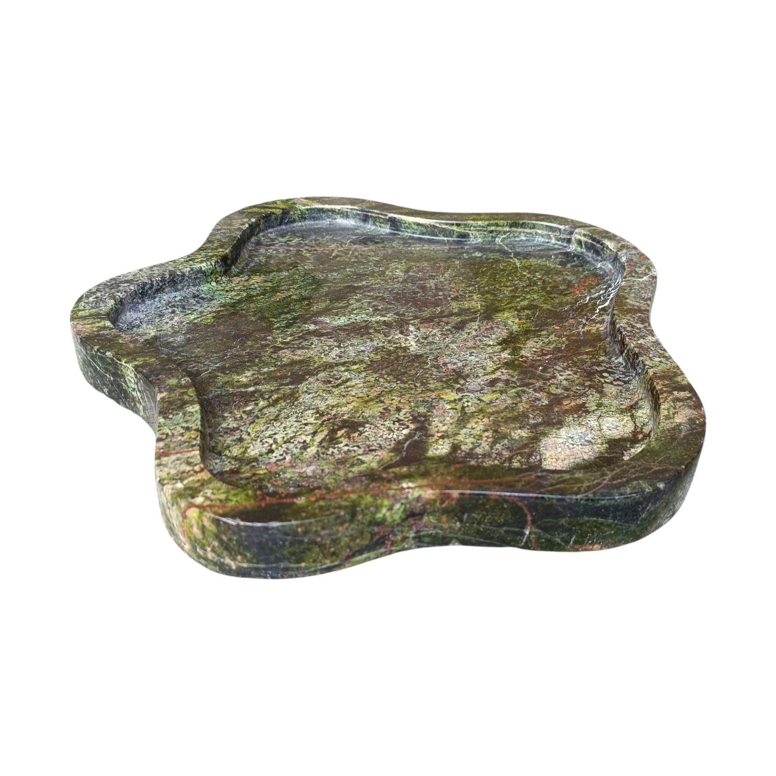 Elegant, A beautifully carved marble tray in the shape of an amoeba with a flat bottom. Can be used to keep your keys, Jewellery or small items or to serve Cookies. The size is excellent for various uses, and the raised edges keep the contents in place. It can be used to serve drinks in this tray. It can be kept at the side of the tables or on the console. You can easily clean the marble plate with a mild liquid detergent and a soft cloth. This will effectively remove any dust or dirt. You can repeat this cleaning process whenever you feel dust on it. If you want to use it for food, please make sure that you wash and clean it thoroughly before you use it. Since marble products undergo polishing and waxing to achieve a smooth finish, proper cleaning is essential before placing any edible items on the surface.