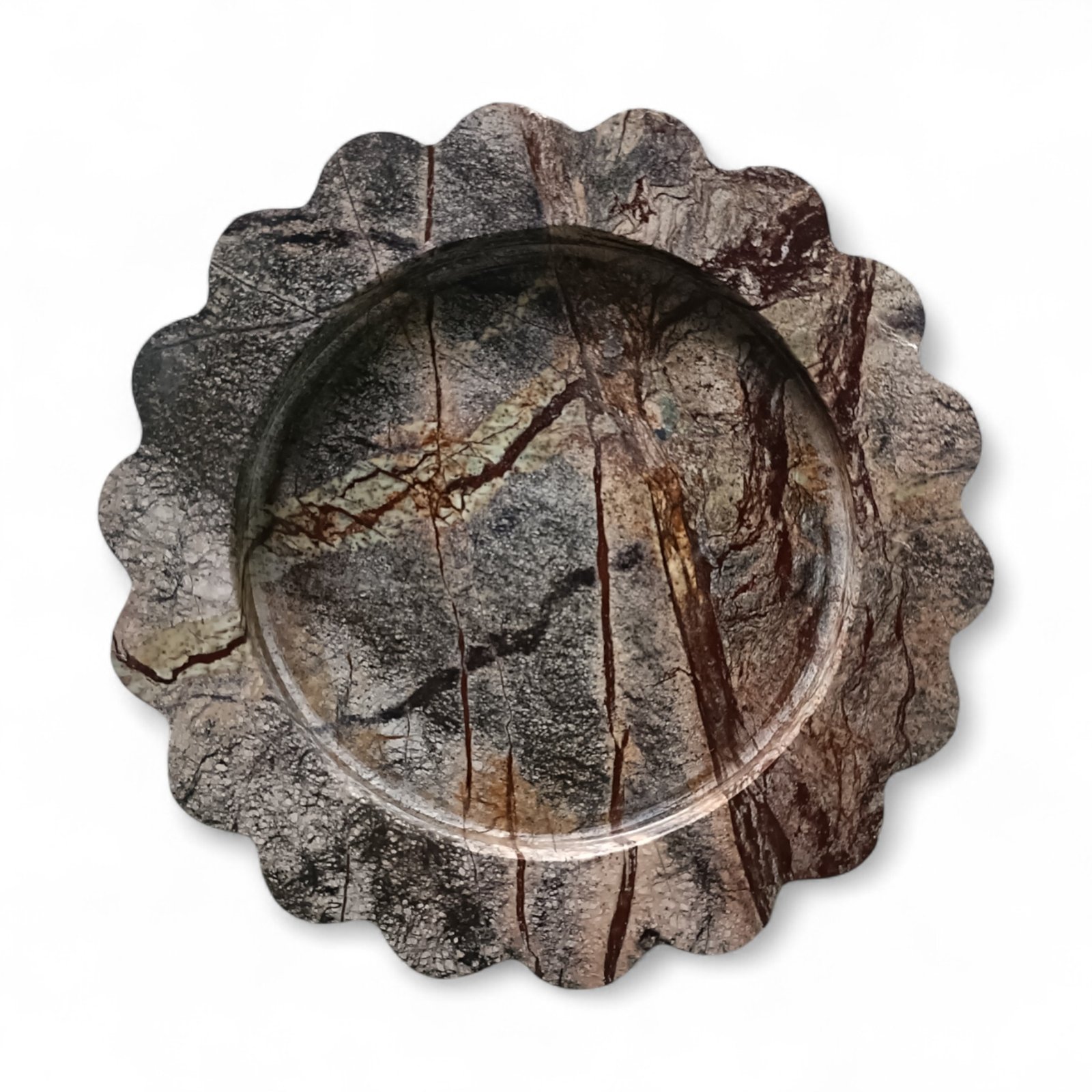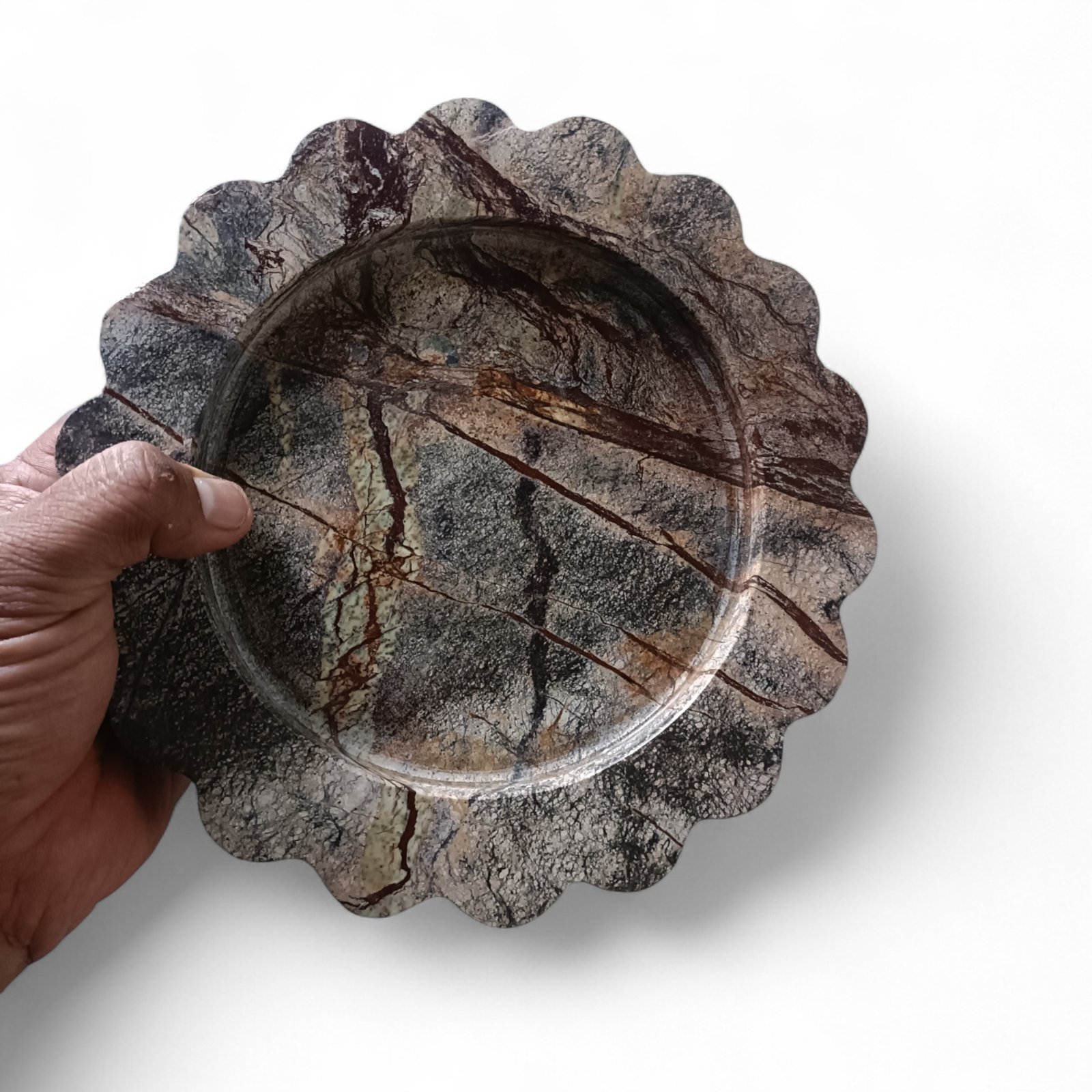 Elegant, A beautifully carved marble tray in a Round shape with a flat bottom. It can be used to keep your keys, Jewellery or small items to serve Cookies or can be placed as a Decorative Piece. The size is excellent for various uses, and the raised edges keep the contents in place. It can be used to serve drinks in this tray. It can be kept at the side of the tables or on the console.