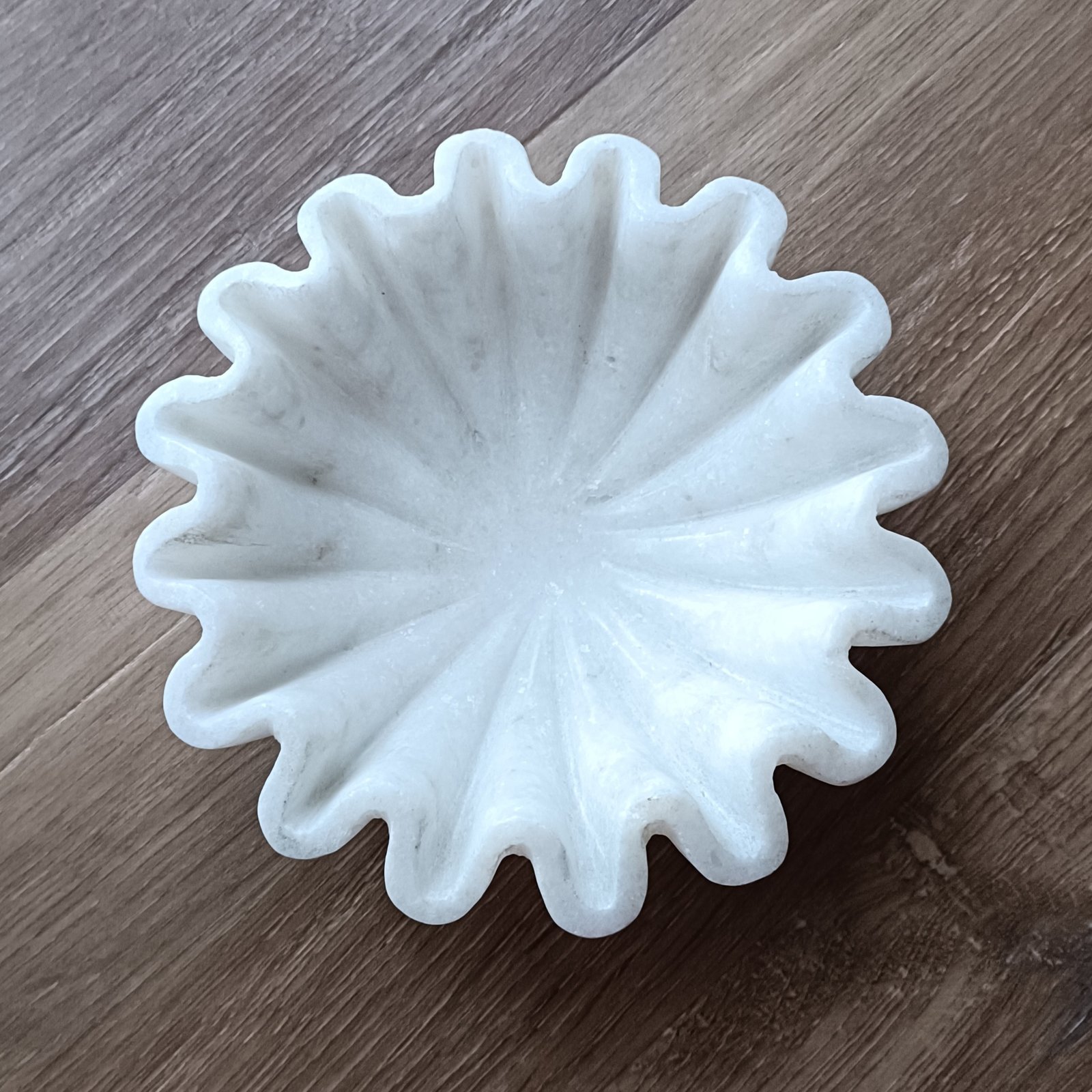Combining natural materials and skilled workmanship can create some truly stunning pieces that are functional and beautiful. These bowls come in various designs, including ruffle, scallop, and wave patterns. They are made from high-quality marble, which gives them a strong and durable quality. The unique patterns and textures of the marble are showcased in each bowl, making them a stunning addition to any kitchen or dining room.