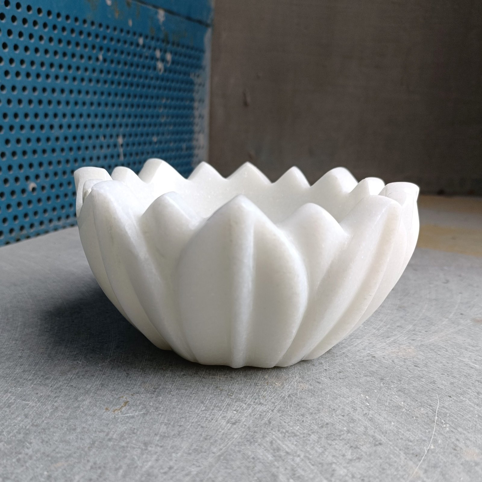 Snow White Lotus Bloom Marble Sculptural Bowl – 6 Inch