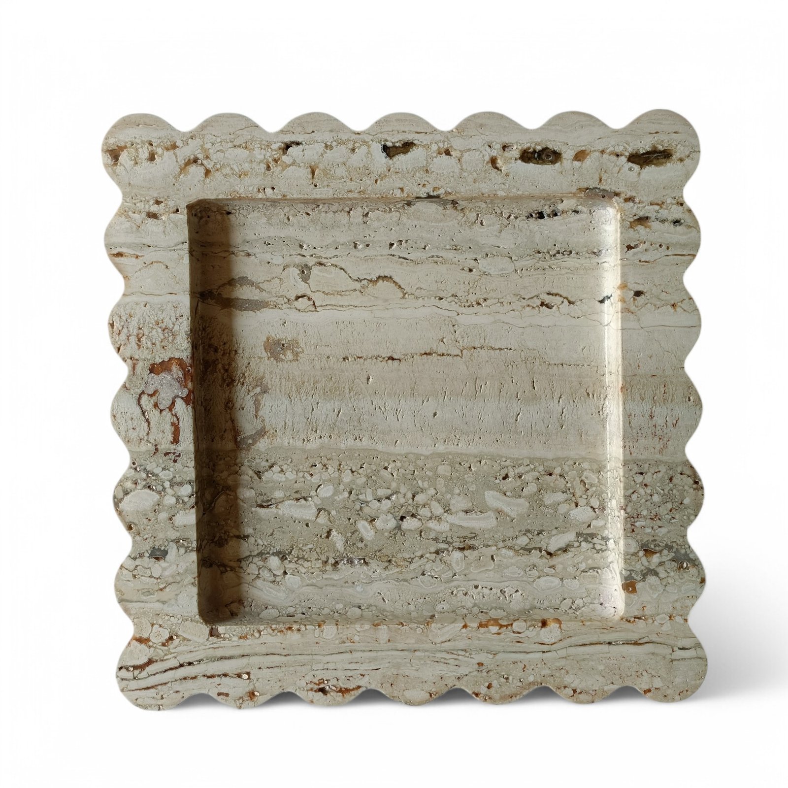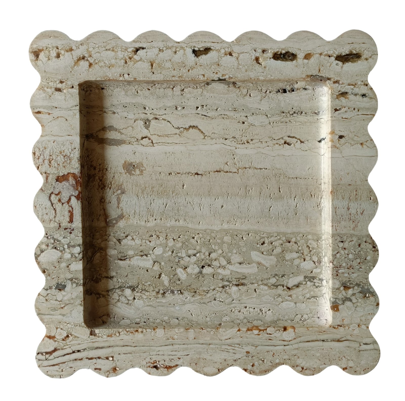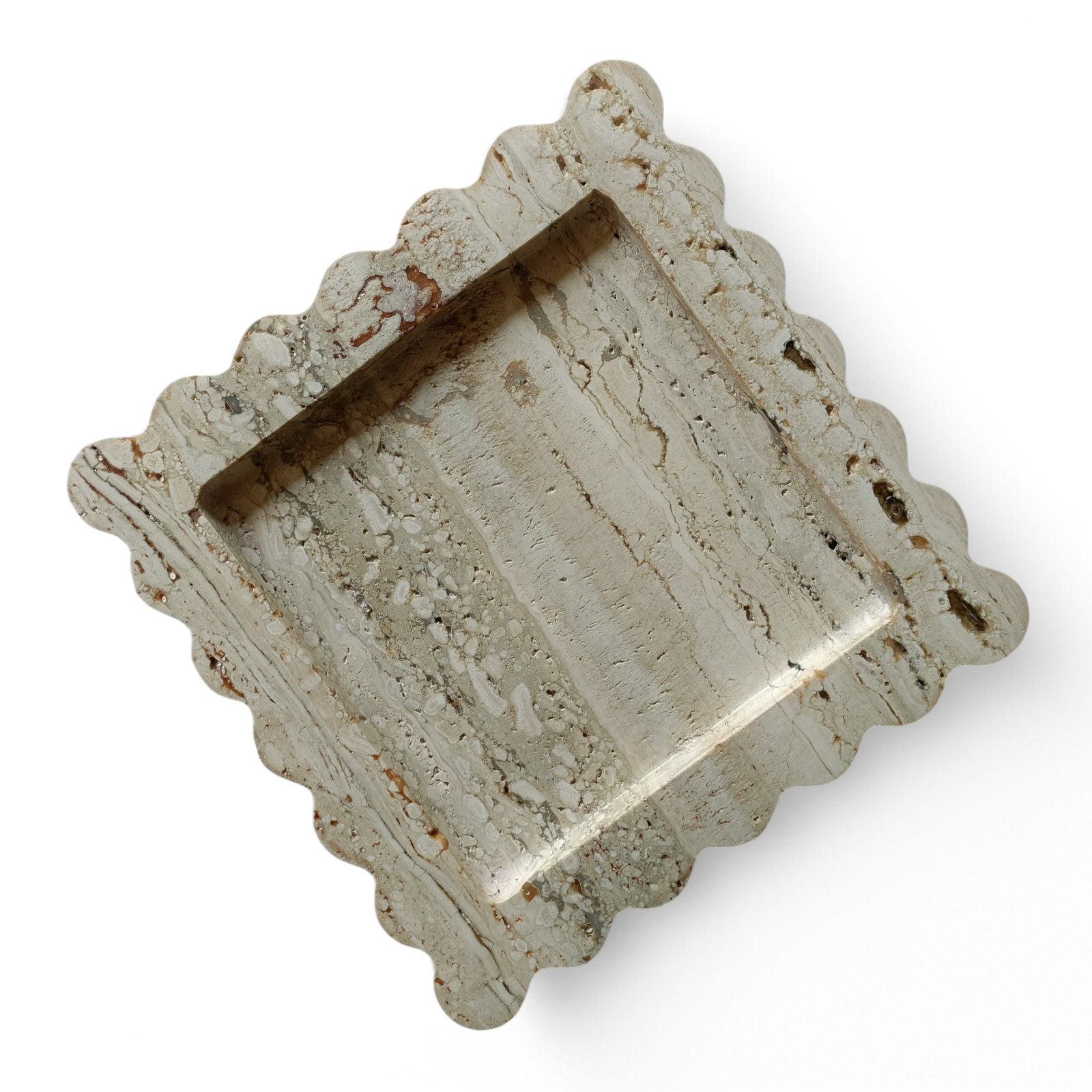 Elegant, A beautifully carved marble tray in a Square shape with a flat bottom. The size is excellent for various uses, and the raised edges keep the contents in place. It can be used to serve drinks in this tray. It can be kept at the side of the tables or on the console. You can easily clean the marble plate with a mild liquid detergent and a soft cloth. This will effectively remove any dust or dirt. You can repeat this cleaning process whenever you feel dust on it. If you want to use it for food, please make sure that you wash and clean it thoroughly before you use it. Since marble products undergo polishing and waxing to achieve a smooth finish, proper cleaning is essential before placing any edible items on the surface.