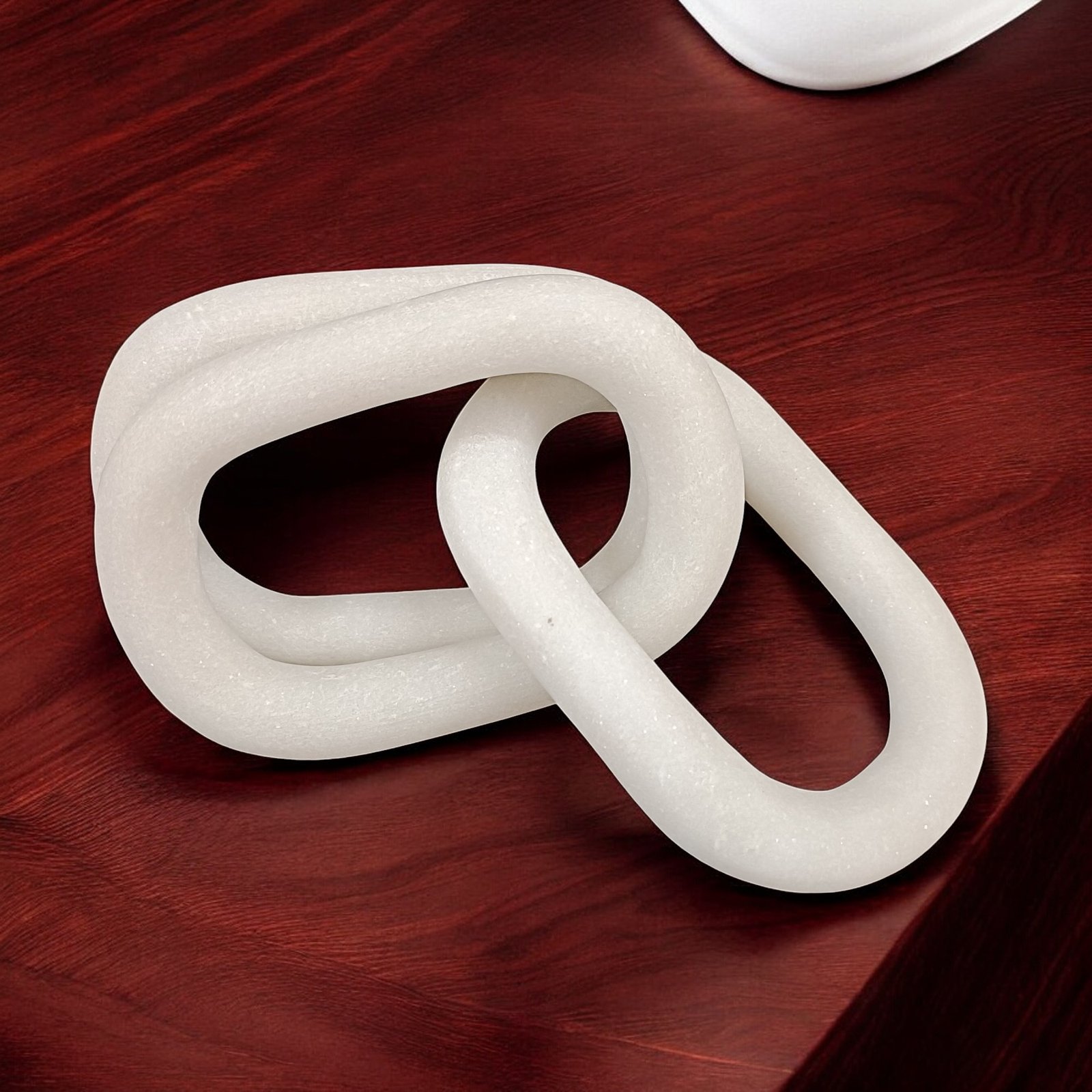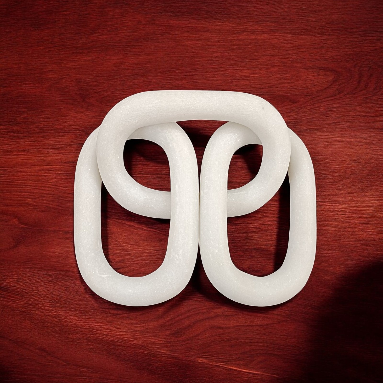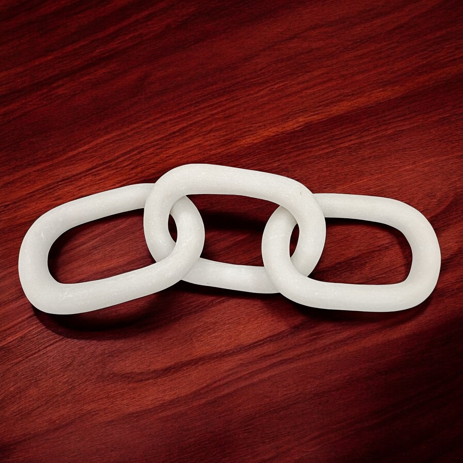 This stunning handmade marble chain with three interlocking links is a versatile decorative piece. It exudes a modern yet timeless charm and can be placed on a console table, side table, or used as a centerpiece to elevate your interior décor. Its sleek design complements various styles, from contemporary to classic, while the smooth, cool surface of the marble adds a luxurious touch. Whether displayed alone or paired with other decorative items, this marble chain is sure to make a statement.